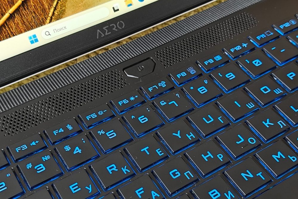 Клавиатура у ноутбука полноразмерная, с однозонной RGB‑подсветкой. Ход клавиш до 1,7 мм, есть поддержка N-key rollover. Это качественная рабочаяа клавиатура: подсветка здесь не превращает ноутбук в елку, а помогает работать в темноте. При наборе текста клавиатура воспринимается достаточно четкой и информативной, к ходовым ощущениям претензий немного. Для созвонов и работы голосом рассчитан встроенный массив микрофонов, а мультимедийные сценарии поддерживаются парой стереодинамиков по 2 Вт.