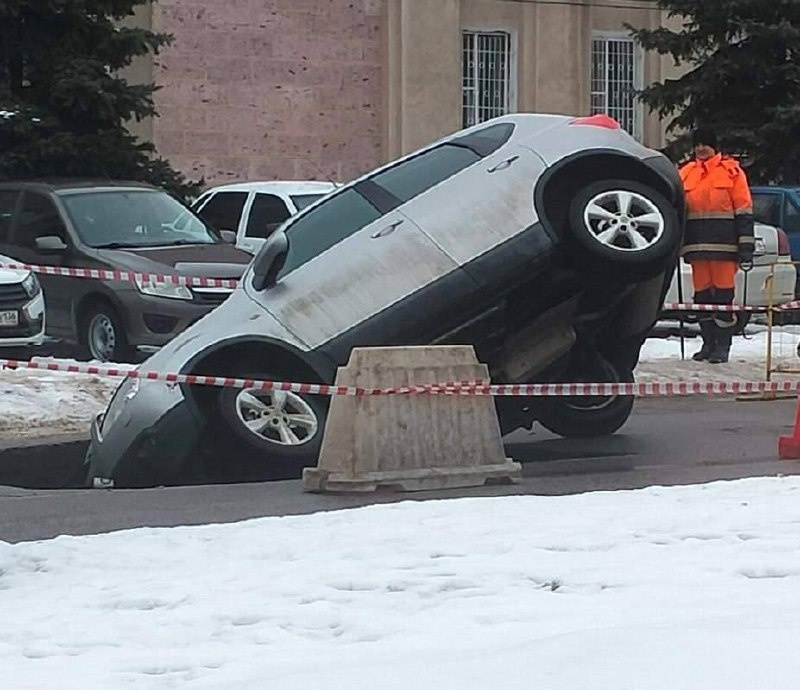 Неудивительная картина для Воронежа: женщина за рулем кроссовера провалилась в яму на Циолковского🤷🏻♂️