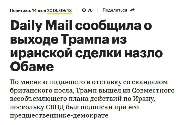 В 2015 году были подписаны договорённости с Ираном по ограничению обогащения урана в обмен на снятие санкций. Т. е. Иран отказался от создания ядерного оружия и пустил в страну международных наблюдателей. Т. е. в 2015 году от Ирана добились того, что так яростно сейчас требует Трамп. Того, из-за чего его бомбили и собираются атаковать. Но сам же Трамп в 2019 году отменил эту сделку в одностороннем порядке, поскольку этот договор был подписан при его предшественнике-демократе Обаме. Всё, что нужно знать про миротворца Трампа. Советский в - MAX