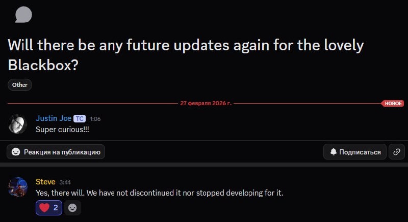 В новом дискорде 1010music был получен чуть более обнадеживающий ответ насчет будущих обновлений Blackbox