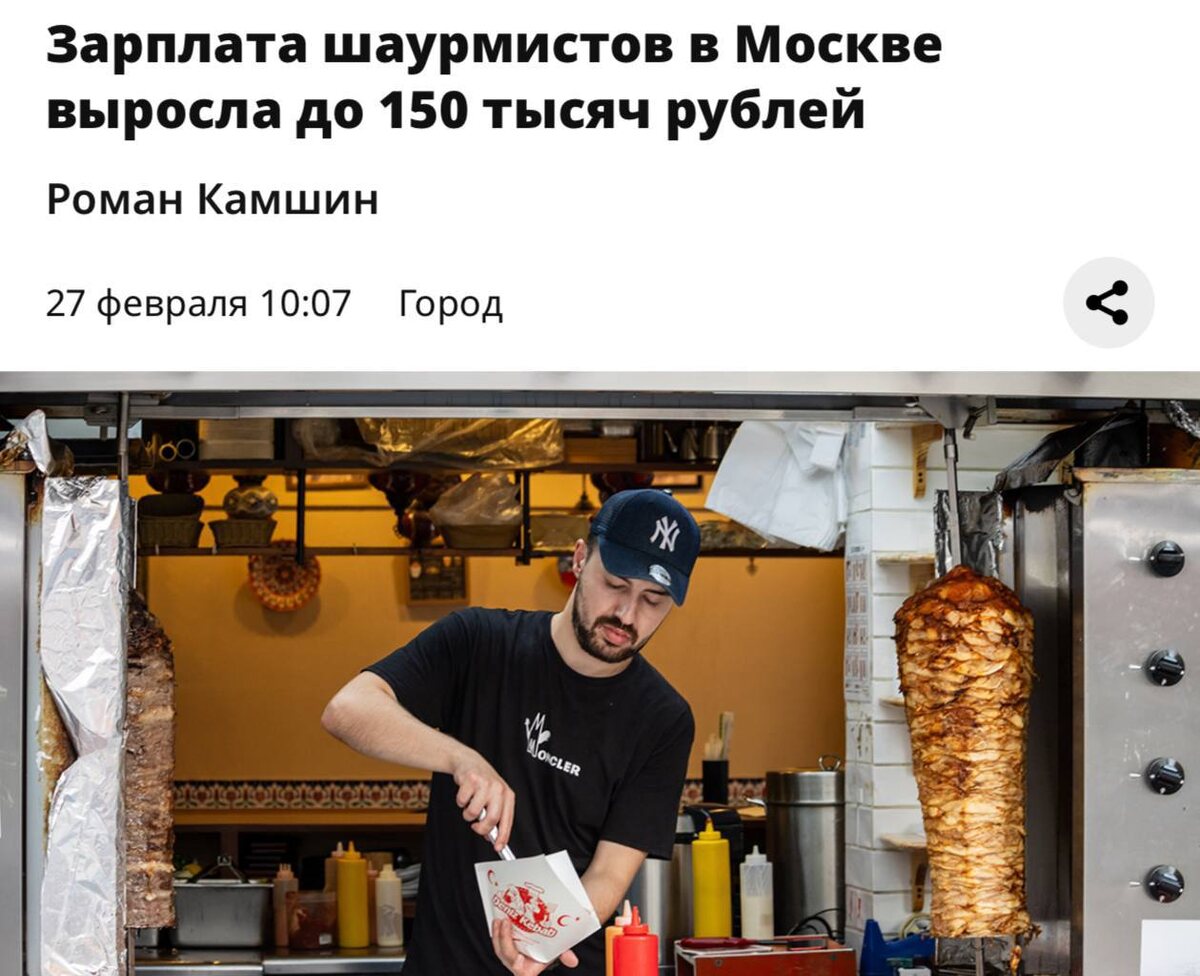🥙 Зарплаты шаурмистов выросли до 150 тыс рублей