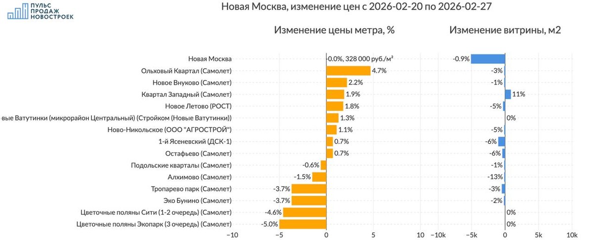Новая Москва, обзор изменения предложения на рынке за неделю