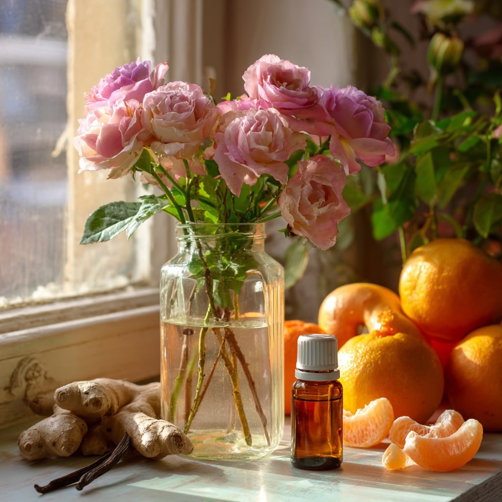 Настоящей. Знаете это чувство, когда смешиваешь, казалось бы, знакомые ингредиенты, а на выходе получаешь… магию? Которая дышит, переливается, звучит и вдруг — становится частью тебя? У меня было утро. Тишина, пипетки, пузырьки, капли. Я просто хотела создать для себя настроение. А создала нечто, от чего до сих пор мурашки. Я соединила пять ингредиентов. Люблю цифру 5️⃣❗️ 🍊 — для той самой беззащитной, искренней радости, с которой всё начинается. Он первый врывается в композицию, как смех ребёнка, который увидел солнце после дождя. 🍋🟩 — мой любимый антидот от тревоги. Он пришёл вторым, чтобы мягко, но уверенно сказать мандарину: «Радуйся, но не теряй себя. Я здесь, я уравновешу». 🫚 — огненный, пряный, дерзкий. Тот самый внутренний капитан, который шепчет: «Вставай. Действуй. Ты можешь больше, чем думаешь». А потом я добавила 🌹. И здесь случилось чудо. 🌹 не кричит. Она входит тихо, но заполняет всё пространство собой. Она — про принятие. Про ту самую любовь к себе, котор