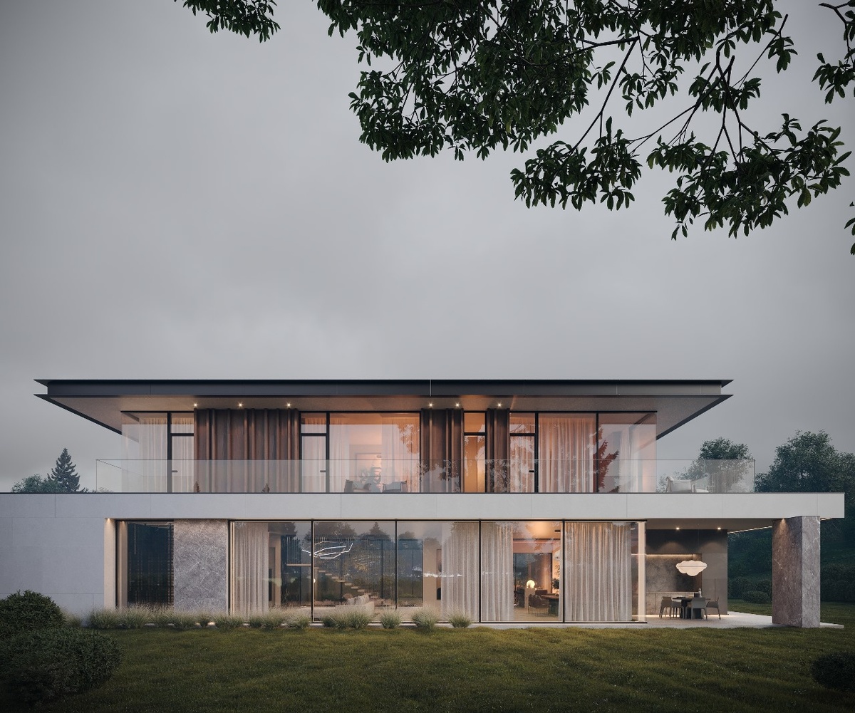 ✔️ Наше готовое архитектурное решение, которое можно выбрать для строительства дома без разработки индивидуальной концепции. Это современная двухэтажная вилла площадью около 430 м² с продуманной логикой планировки и четким зонированием пространства. На первом этаже расположены просторная гостиная-столовая, кухня, кабинет, вспомогательные помещения, гардеробные и кладовые. Планировка выстроена так, чтобы повседневные маршруты были удобными, а общая зона оставалась открытой и светлой. Второй этаж — приватный блок: мастер-спальня и две дополнительные спальни с собственными ванными и гардеробными. Запроектирована открытая терраса, которая расширяет жилое пространство в теплый сезон. В архитектуре — современный минимализм, крупные форматы остекления, сочетание камня и дерева в отделке фасада. Дом выглядит цельно и сдержанно, без избыточных декоративных элементов. Предусмотрен гараж на два автомобиля. «Феникс» — это готовый проект, который можно адаптировать под участок и реализовать с нашей