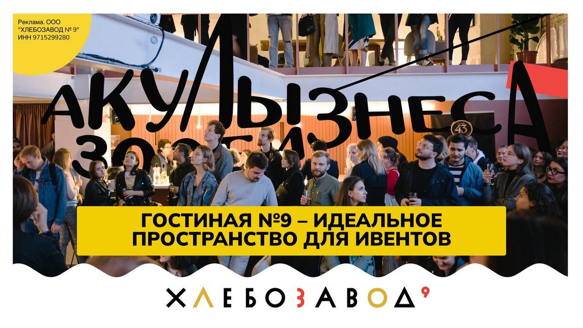 Хлебозавод с новым предложением: Гостиная №9 – многофункциональная площадка. Днём – лекции, мастер-классы, корпоративные собрания. Вечером – ужины, приватные презентации, вечеринки с выходом на крышу. Пространство легко подстраивается под настроение вашего события. Что получают организаторы: ✅ Премиальный интерьер. Панорамные окна, двухуровневое пространство, яркие акценты и много воз духа – визуал делает половину работы за вас. ✅ Полная техническая готовность. Проектор 4 м, акустика Electro-Voice, бар, гардероб, кулер, холодильник, DJ-стол, микшерный пульт. ✅ Пространство. Общая площадь 135м², 70 посадочных мест, выход на крышу в 500 м² ✅ Удобная логистика. Минута от метро «Дмитровская», круглосуточная парковка, высокий трафик локации. Готовите событие? Тогда смело добавляйте Гостиную №9 в шорт-лист! А ещё у них специально для вас промокод для скидки 25% при бронировании Гостиной до 30 апреля: ДРУЗЬЯ2026 Посмотреть подробнее тут Акулы Зообизнеса. Канал, который читает весь зоор