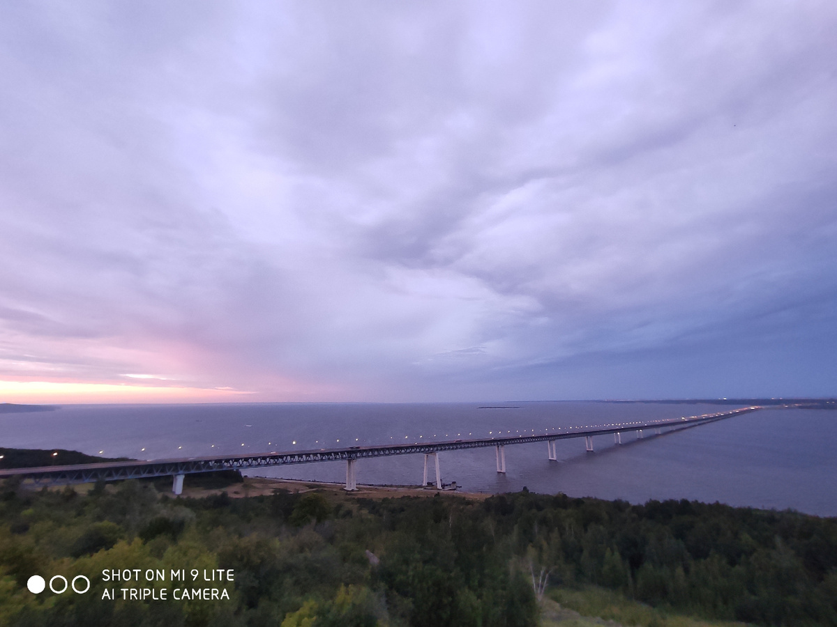 Одно из самых широких мест на Волге именно здесь. И когда ты сидишь между двух мостов, в нейтральной зеленой зоне - не в кафе, не на террасе, а просто на траве - и видишь сразу два моста над водой… это невозможно объяснить или описать. Это просто надо видеть.