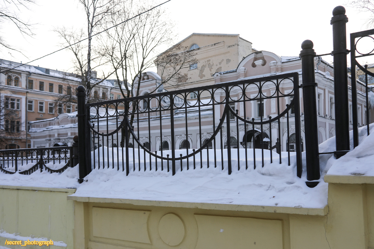 О Крестовниковых я писал уже много раз. Давно обещал рассказать и об усадьбе Юлии Тимофеевны, дочери Тимофея Саввича Морозова, но летом усадебный дом, стоящий позади ограды и отделенный от нее садом, утопает в зелени, и его почти не разглядеть. Сейчас же самое время, а чистый белый снег лишь оттеняет красоту архитектуры.