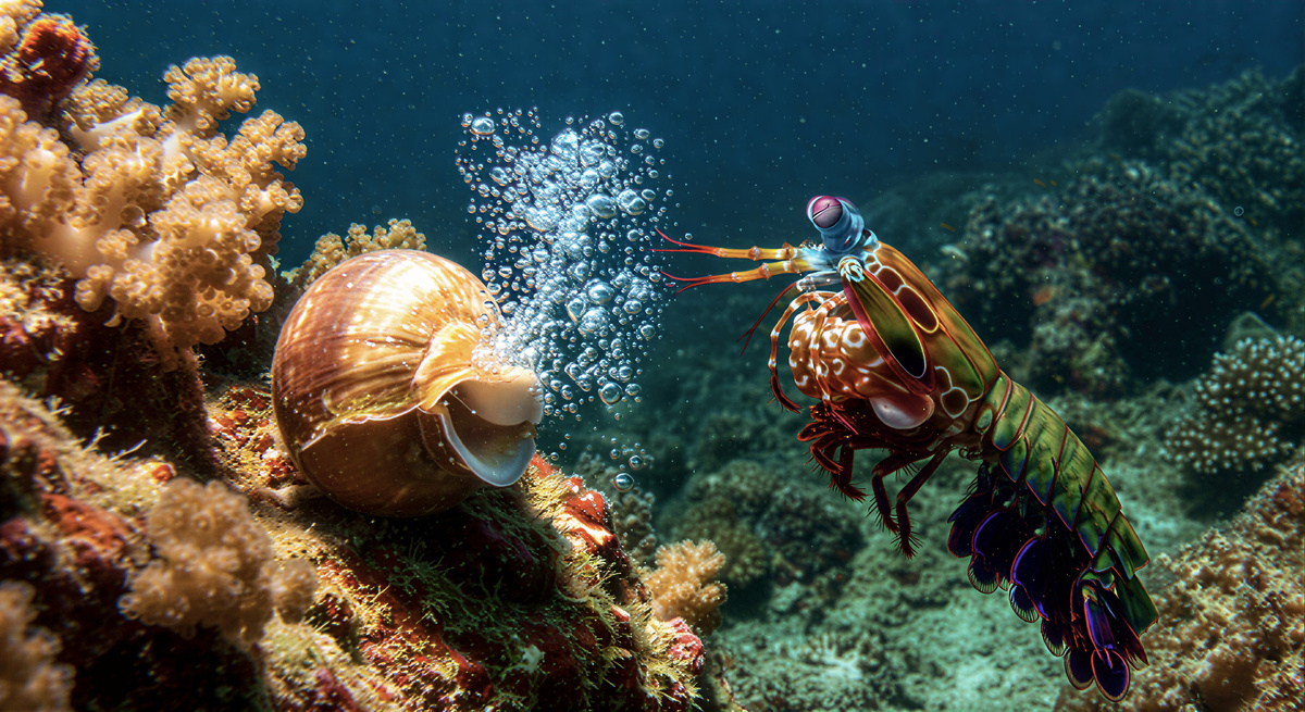 Удар настолько мощный, что его сила достигает 1500 ньютонов. Но самое удивительное — физика процесса. Добыча (краб, улитка или рыба) получает два удара: первый — самой клешней, второй — взрывом пузыря. Этого достаточно, чтобы расколоть самый прочный панцирь или разбить толстое стекло аквариума вдребезги. Если