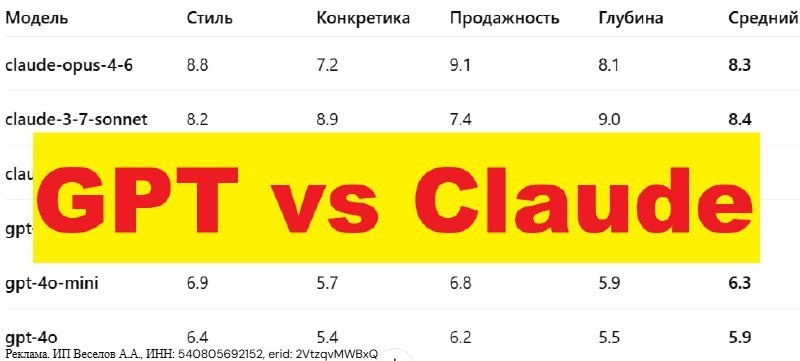 ? Я протестировал 6 моделей ИИ на одном и том же массиве данных. Один промпт. Никаких поблажек. Взял 4 разные компании: 🧂 Минерал — поставщик соли 🚚 Growex — международная логистика 💻 Кодерлайн — партнёр 1С (IT) 📈 Инженеры продаж — digital-агентство Каждой модели «скормил» один и тот же промпт. Задача — написать цепочки писем для B2B-аутрича. Вот что они написали см. примеры писем 👇 https://docs.google.com/spreadsheets/d/1RdIewueh3DBBxZ2OPmRsDa5TuPnmmVw6jCIa6NEJ_VI/edit?gid=0#gid=0 📊 Что дальше? Я попросил Deepseek, KIMI, ChatGPT и Gemini оценить письма — так же, одним и тем же промптом. Но самое интересное началось потом 👇 Когда результаты разошлись, я показал ChatGPT и Gemini рассуждения моделей, с которыми они не совпали. Они пересмотрели аргументацию. Скорректировали оценки. 📌 Финальные результаты — на картинках (в первом комменте). 💥 Вывод? Claude и GPT пишут по-разному. Где-то выигрывает агрессия и хантинг. Где-то — системность и глубина. И это уже не субъе