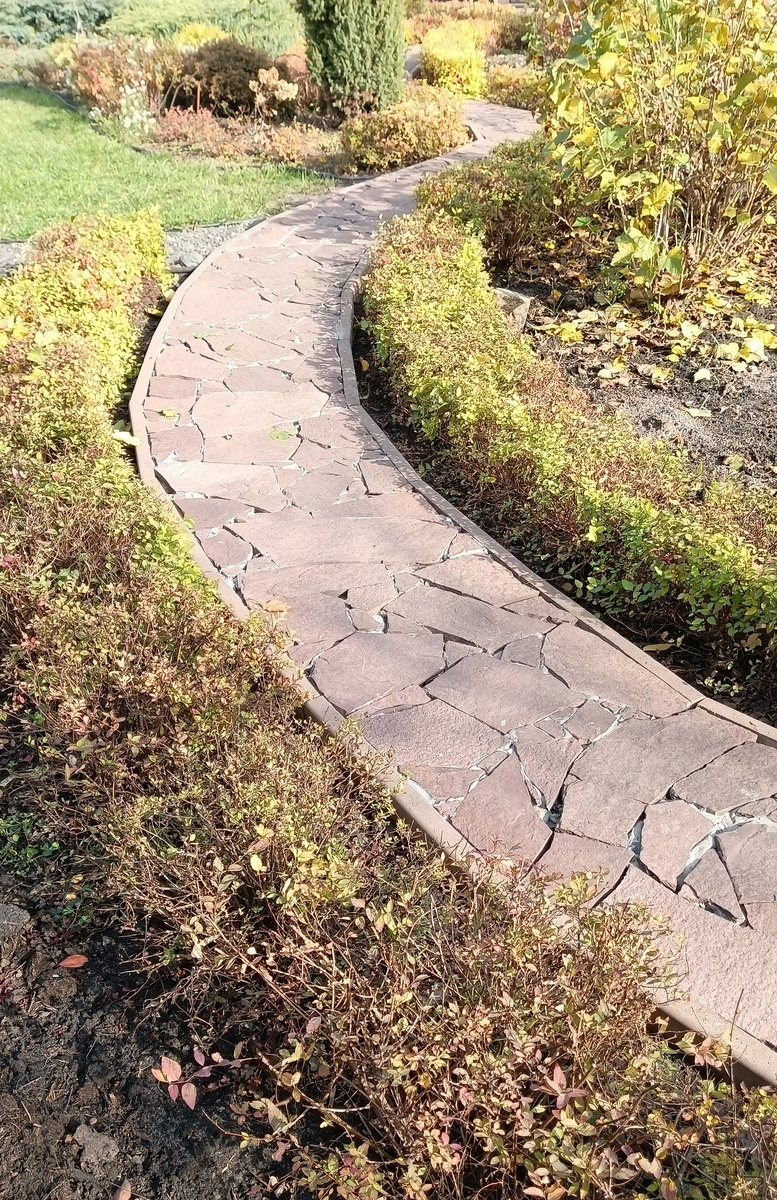 Прошлым летом я так загорелась идеей сделать дорожку из камня у себя в саду своими руками, что как только у меня выдавался выходной, я сразу с раннего утра бежала в сад, замешивала вручную раствор, носила довольно тяжёлые каменные плиты, безумно уставала, но тем не менее была счастлива и довольна получившимся результатом.