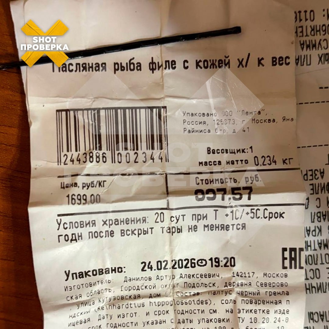 По словам жены, он резко побледнел и слёг с сильным отравлением Как рассказала SHOT ПРОВЕРКЕ наша подписчица Анастасия, 24 февраля они с мужем купили рыбное филе за 700 рублей в «Ленте» на бульваре Яна Райниса. Вечером жена попробовала маленький кусочек, а вот супруг съел всё остальное. Через час, по словам Анастасии, мужчина почувствовал себя плохо — стал очень бледным, началась непрекращающаяся рвота. В больницу он ехать отказался и лечился самостоятельно. Производитель копчёной рыбы — ИП Данилов А.А., компания «Экстра фиш». Как нам стало известно, ранее в рыбной продукции производителя находили превышение содержания микробов и кишечную палочку — опасный товар обнаружили на полках гипермаркета «Окей» в Новосибирске. Покупатели из других городов также жаловались на отравления. ИП выписали предостережение, а сотрудники Управления Роспотребнадзора по Московской области начали внеплановую проверку на предприятии в Подольске. Ранее мы также писали, что состав жира в масляной рыбе в цел