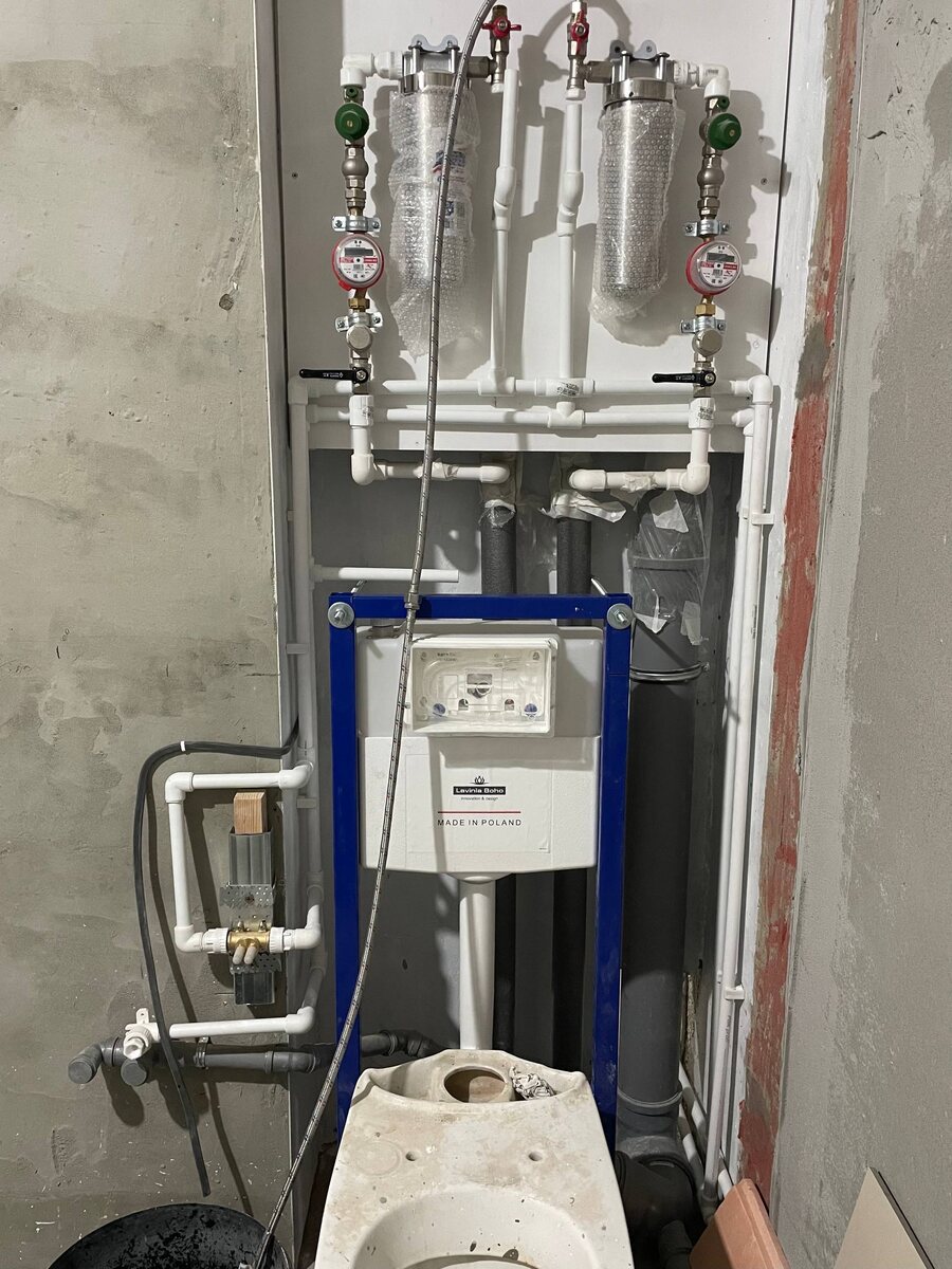 Спаял все трубы, установил инсталляцию и гигиенический душ. Первый опыт такой работы. Надеюсь, попал в размеры и ничего не потечет. Завтра буду запускать и тестить. Неразъемные соединения, которые буду зашивать, посадил на аэробный герметик. Никогда таким не пользовался. Ванну тоже прикинул, установил сифон. Выбрали такой же сифон, как у нас стоит в квартире. McAlpine MRB12. Дорогой, но зато удобный, легко чистится без разбора. Подключается без гофры. #ремонт