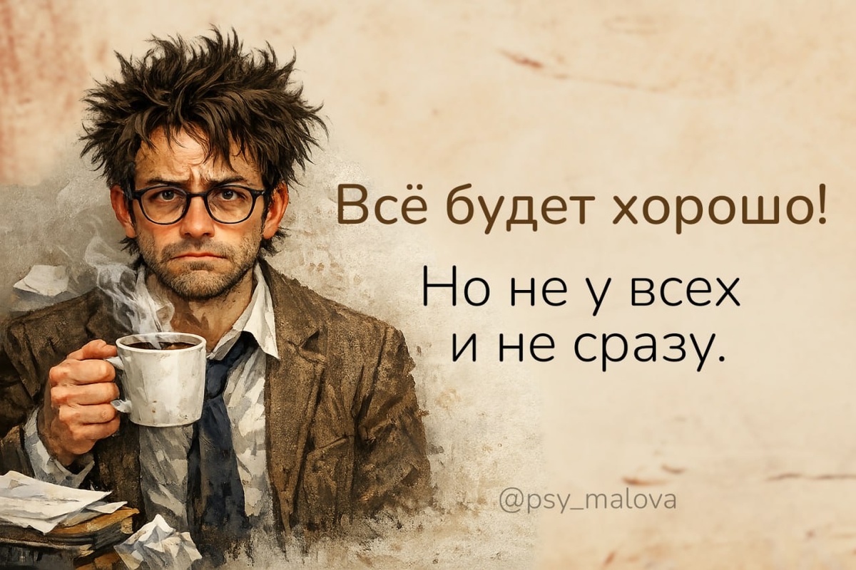 Он обесценивает реальность. Тело-то всё равно знает правду. Оно не верит лозунгам. И подает сигналы: напряжением, бессонницей, комком в горле. Натужный оптимизм ломает что-то в отношениях. Когда одному больно, а другой отвечает «да ладно, всё хорошо», это переводится как: «мне неудобна твоя боль». И тогда мы вроде