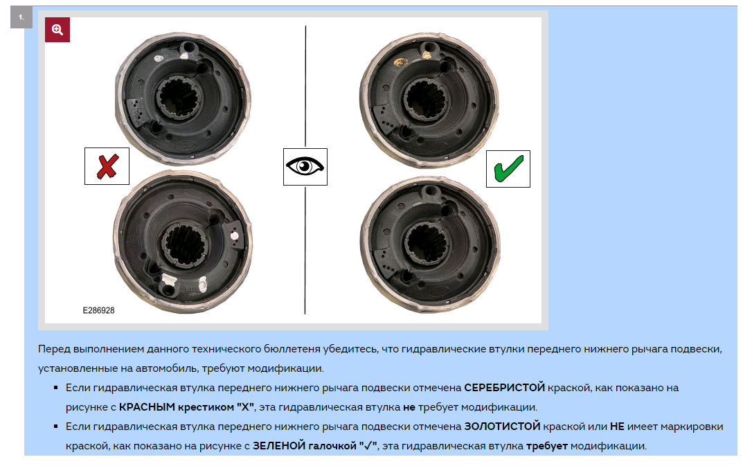Может присутствовать стук в области передней подвески при движении по неровной дороге или при движении со скоростью до 40 км/ч (25 миль/ч). В салоне слышен стук, причиной которого является циркуляция жидкости гидровтулки переднего нижнего рычага задней гидровтулки. Это не оказывает влияния на работу системы подвески. Заливное отверстие, расположенное в НИЖНЕЙ ЧАСТИ гидравлической втулки