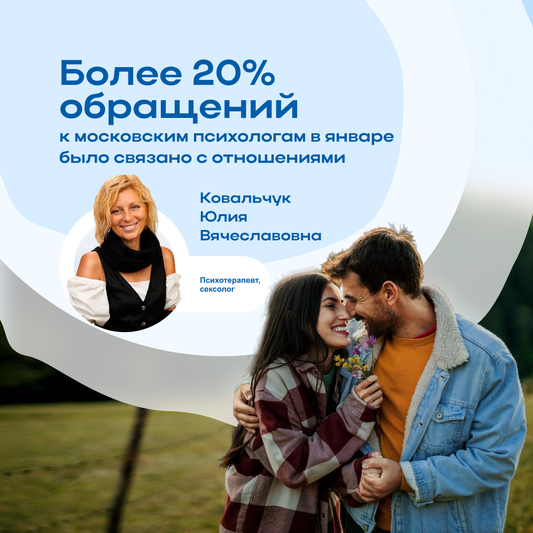 В своем интервью Московскому агентству городских новостей «Москва» ведущий эксперт по психотерапии ОН КЛИНИК Юлия Ковальчук рассказала, что москвичей больше всего этой зимой волнуют их отношения.