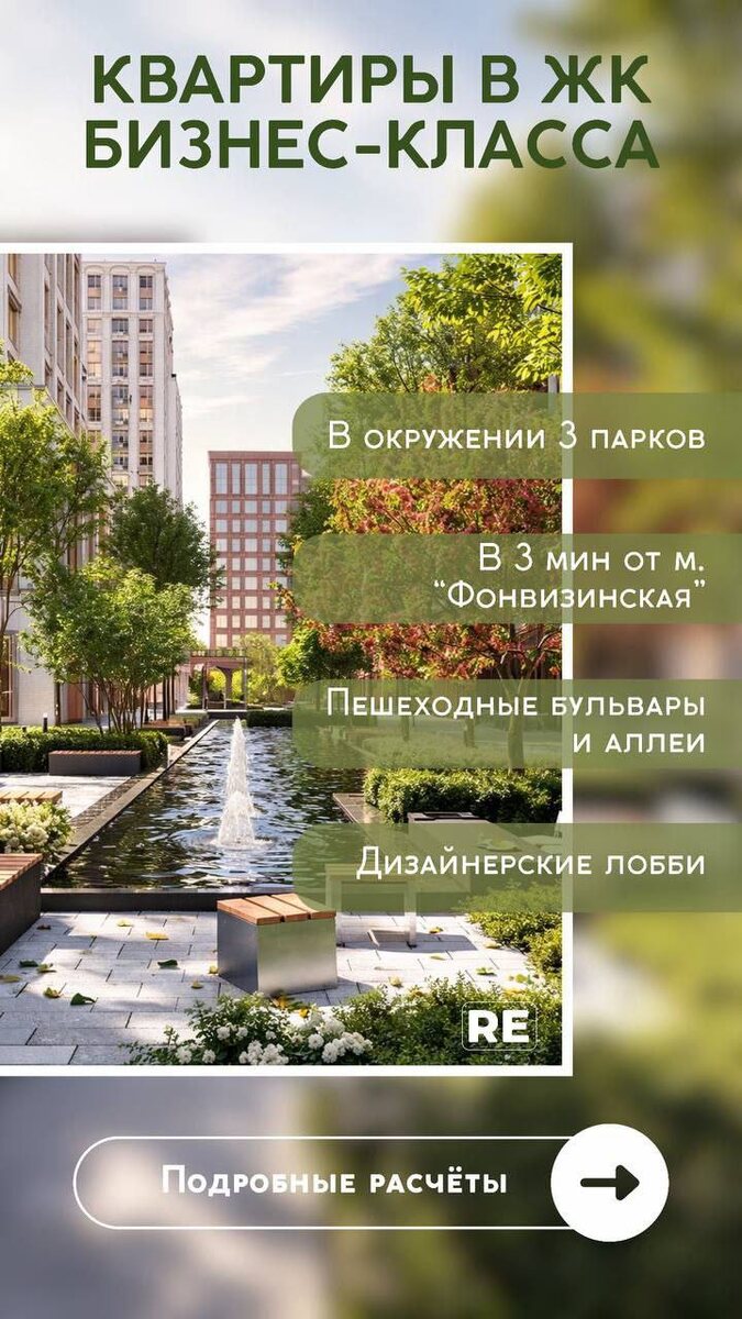 🌳 В трёх минутах от метро «Фонвизинская» и в окружении трёх парков — место, где городской комфорт встречается с природой. О проекте: — Квартал с собственной инфраструктурой: школа, детский сад, торговый центр, бизнес-центр, кафе и рестораны. — Пешеходные бульвары и аллеи для прогулок. — Дизайнерские лобби с продуманным пространством. Сроки сдачи: 🏗️ Строительство идёт в два этапа: — Первый корпус — III квартал 2027 года. — Остальные корпуса — 2028 год. Новый пул квартир: 🔹 Студия 31 м² Цена со скидкой: 22 440 000 ₽ (было 27 040 000 ₽) Первый взнос: 10 440 000 ₽ Платеж: 71 900 ₽ (семейная ипотека 6% на 30 лет) 🔹 Квартира Цена: 31 461 815 ₽ Первый взнос: 11 461 815 ₽ Платеж: 237 000 ₽ (базовая ипотека 14% на 30 лет) 🔹 Квартира Цена: 39 260 000 ₽ Первый взнос: 12 000 000 ₽ Платеж: 136 200 ₽ (рассрочка до конца года, переход в ипотеку возможен на любом этапе, остаток — 15.12.2026) Все объекты — в шаговой доступности от метро, парков и собственной инфраструктуры квартала. Хоти