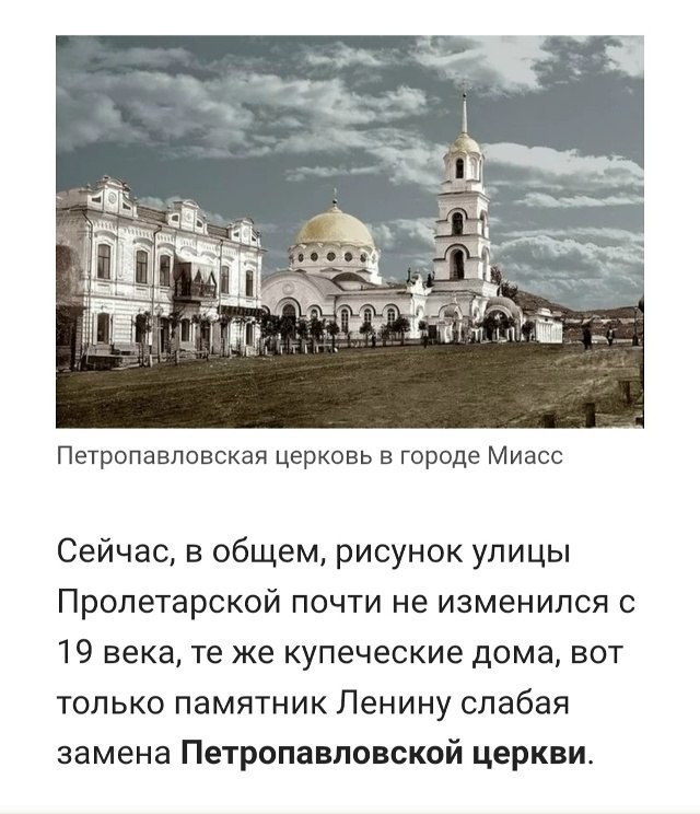 Рядом располагался дом Пролетарская 1. Бывший дом купца Жарова, где в 1918 г. размещался 1-й городской комитет рабочих, солдатских и крестьянских депутатов (г. Миасс, ул. Пролетарская, 1, ранее Октябрьская, 1) - объект культурного наследия регионального значения (конец XIX века). Дом купца и золотопромышленника Жарова стоит на углу улиц Пролетарской и Октябрьской, угол площади Труда. Второй этаж, как водится, был для семьи, а на первом находился магазин. Этот дом сразу же стал одним из существенных элементов архитектурного рисунка Церковной (как называлась пл. Труда до революции) площади. Еще её называли Базарной. Подробнее в комментариях... ----- Сообщает: Инцидент Миасс 🫛Миасс Православный