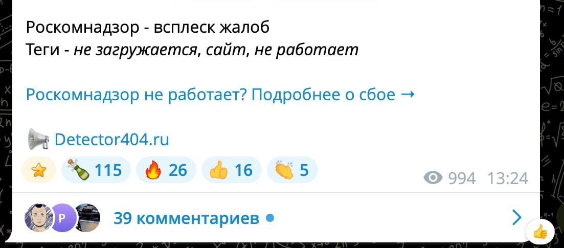 Реакция пользователей сервиса Downdetector за 10 минут после публикации сообщения о сборе в РКН! Комментарии соответствующие! ❄ «Арктический Обозреватель»