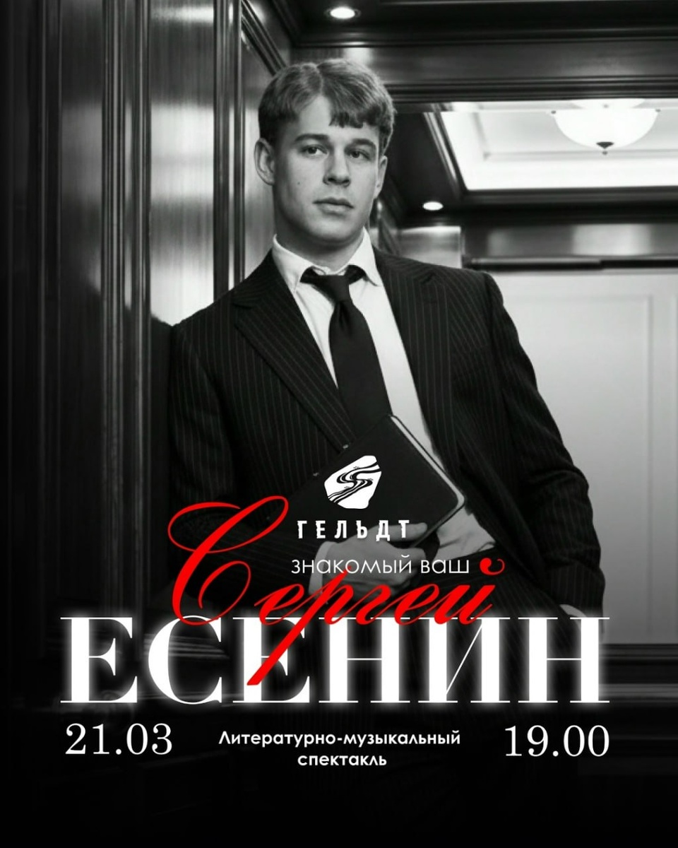 🎼 ✨ Через поэзию, музыку и драматическое действие зритель пройдёт путь Есенина — от восторженной веры в любовь и красоту мира до трагического одиночества и внутреннего разлома. Стихи поэта прозвучат как исповедь, а музыка и пластическое воплощение сделают личную драму Есенина близкой каждому зрителю. 📆 21 марта в 19:00. 📍 Ресторан «Гельдт». 🎟 Стоимость билета: 3000₽. В стоимость входит welcome и закуски. 📞 Бронь столиков по телефону: 33-17-07. Оставайтесь с нами #НашаПсковскаяобласть