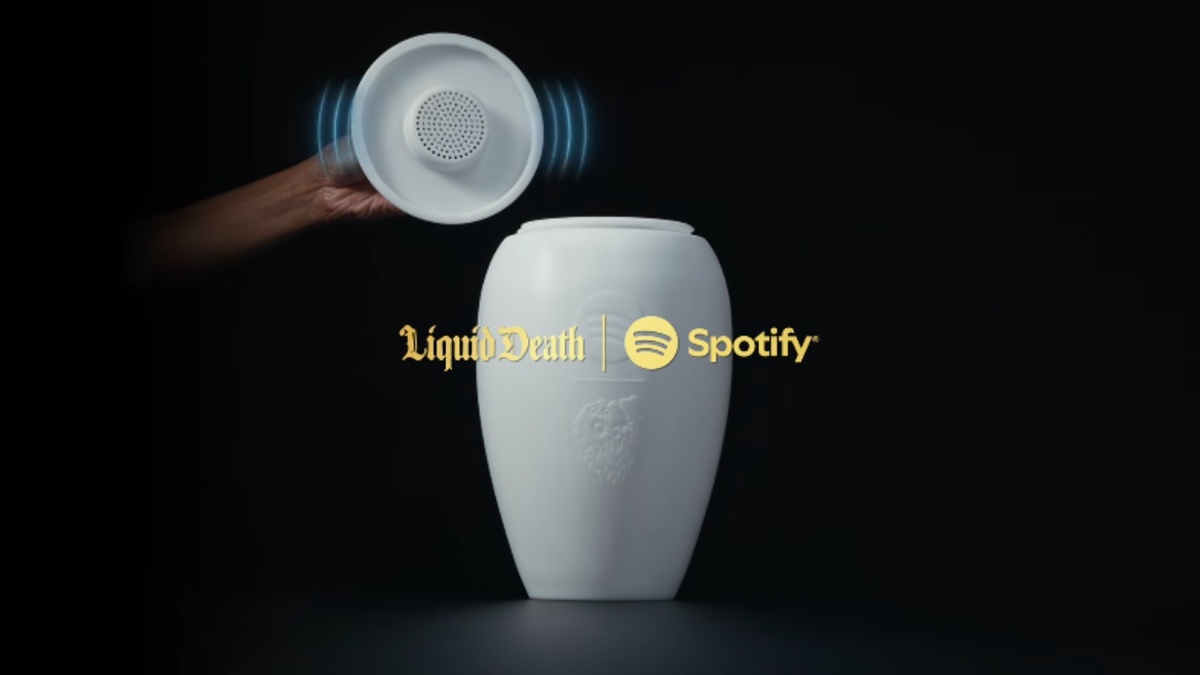 Стриминговый сервис Spotify совместно с брендом воды «Жидкая смерть» (Liquid Death) выпустил лимитированную серию погребальных урн, оснащенных встроенной Bluetooth-колонкой для трансляции музыки. «Урна для вечного плейлиста» поступило в продажу в США по цене 495 долларов. Тираж новинки строго ограничен и составляет всего 150 экземпляров. Конструктивно гаджет представляет собой классический мемориальный сосуд, под крышкой которого скрыт беспроводной динамик. Как отмечают разработчики, устройство синхронизируется с любым смартфоном по Bluetooth, позволяя транслировать аудиозаписи непосредственно через урну. В дополнение к физическому продукту Spotify запустил цифровой сервис «Генератор вечного плейлиста». Специальный алгоритм анализирует историю прослушиваний пользователя и предлагает ответить на вопросы для создания персонального «посмертного саундтрека». В частности, пользователям предлагают выбрать, под какую музыку они хотели бы «пугать живых в образе призрака» или какое настроение о