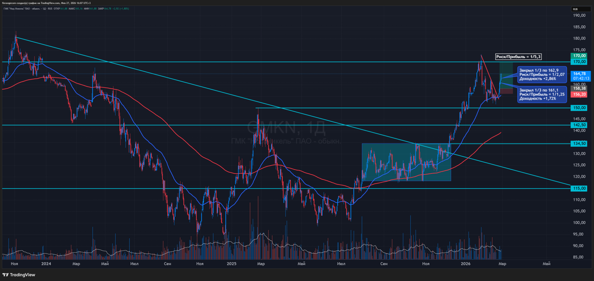 Сегодня утро было очень активным, проснулся, увидел рост в акциях Норильского никеля на слабом рынке, закрыл ещё 1/3 позиции по 162,9 руб. После, увидел рост цен на сырьевые товары и потом уже возобновилось ослабление рубля. Поторопился с фиксацией прибыли после вчерашней слабости рынка. Не успел я подготовиться к публикации отчетов, как вышла новость о налоге на сверхприбыль банков. На первом же отскоке открыл шорт в акциях ВТБ. Согласно законопроекту, с текстом которого ознакомилось «РИА Новости», предлагается ввести разовый налог на дополнительную прибыль, полученную банками в период с 2025 по 2026 годы. Таким образом, появился риск дополнительного изъятия прибыли. У ВТБ коэффициент выплат и так был под большим вопросом, а тут еще и разовый налог, который снизит достаточность капитала. Пока дописывал предыдущее предложение для рассылки в закрытом клубе, засомневался, что такой законопроект примут, поэтому при первой возможности закрыли позицию с небольшим плюсом. Нужно было просто з