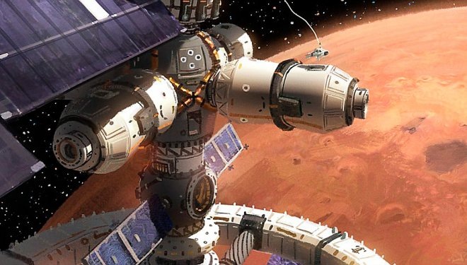 Состыковавшись с орбитальной станцией на орбите Марса, экипаж должен был подготовить свой космический корабль для следующего перелета к Юпитеру. Такая возможность происходит раз в 28 месяцев. После путешествия, которое займет около трех лет, экипаж, выйдет на орбиту вокруг Юпитера, на которой он будет ожидать открытия окна перелета к Сатурну. Трансферное окно перелета с Юпитера к Сатурну открывается раз в 20 лет.