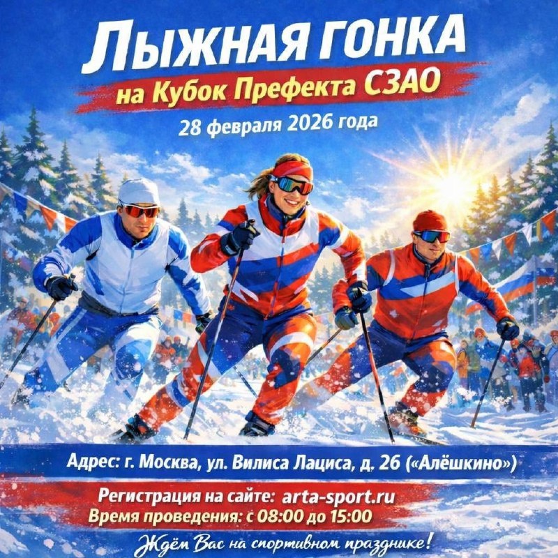 Ваши лыжи уже ждут своего часа? Если нет — самое время их подготовить, ведь завтра нас ждет не просто гонка, а большой семейный праздник 🥳 ❄️ В Алёшкино 28 февраля развернется настоящая спортивная битва за Кубок Префекта СЗАО! Почему стоит прийти, даже если вы не планируете бежать? 🎁 Главный шанс дня в 12:00: Ровно в полдень на сцене начнется МЕГА-розыгрыш крутых призов. Победить может каждый гость, даже не выходя на старт! 🍜 Полевая кухня: Тот самый случай, когда каша из котелка вкуснее ресторанных блюд — наш шеф-повар уже готовит меню. 🏅 Медаль каждому: Мы ценим характер! Каждый, кто пересечет финишную черту, получит памятную награду. 🔥 Атмосфера: Живописная трасса, поддержка болельщиков и энергия всего округа. Приглашаем всех: от любителей до профессионалов. Станьте частью спортивной истории нашего округа! 📍 Адрес: ул. Вилиса Лациса, д. 26 (зона Алёшкино) 🕔 Время: 28 февраля, старт с 08:00 🎉 Открытие и розыгрыш: в 12:00 До встречи на старте! Пусть победит сильнейший