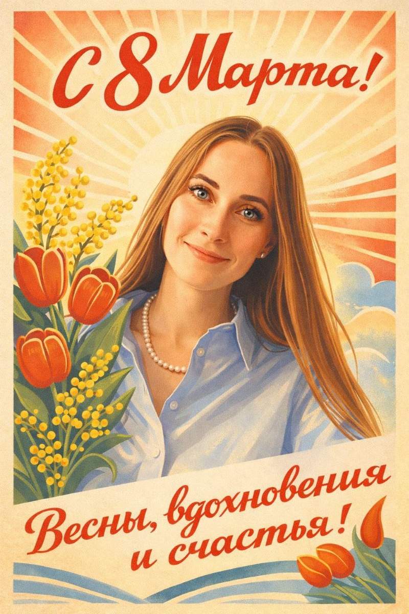 Уже совсем скоро 8 Марта 🌷 И так хочется поздравить коллег, сестру, маму или подругу по-особенному — не шаблонной картинкой из интернета, а личной, тёплой открыткой именно для неё. Я подготовила идеи и примеры оригинальных персональных открыток — можно сделать за 2 минуты. Если вам нужны промпты для генерации открыток ставьте: ❤нужны ❤️🔥очень нужны 👍классная идея