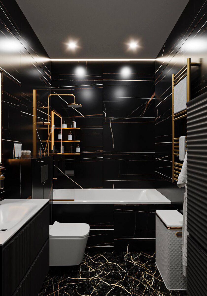 В СПб режим зимы, хотя день становится длиннее. Немного темных рендеров с нашего проекта в ЖК Черная речка. Темный цвет погружает в сон и спокойствие. Ванная комната - пространство духовной чистоты. Утром человек себя приводит в порядок после сна. Вечером готовится ко сну. #дизайн #интерьер #design #interior #development #офис #дом #кафе #квартира