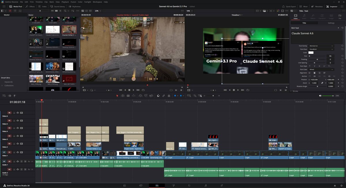 Видео про сравнение Claude Sonnet 4.6 и Gemini 3.1 Pro завтра👍🏻