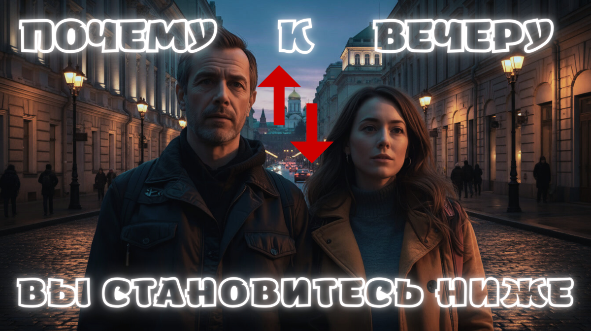 Если измерить рост утром и вечером, разница действительно будет. Небольшая — от нескольких миллиметров до полутора сантиметров. Но она есть. И это не фантазия, не возраст и не «кажется». Это обычная физиология, о которой редко задумываются. Между позвонками находятся диски — упругие прокладки, наполненные влагой. Утром они максимально «насыщены», потому что ночью мы лежим, и давление на позвоночник минимально. За несколько часов сна диски буквально напитываются жидкостью. Мы ходим, сидим, стоим, носим сумки, наклоняемся. Гравитация работает без перерывов. Под её действием диски постепенно сжимаются. Они не разрушаются — просто становятся чуть плотнее. В результате позвоночник становится немного короче. Отсюда и разница в росте. Но дело не только в дисках. Особенно глубокие мышцы спины и шеи. Пока они в тонусе мы словно «собраны». Когда устают — тело начинает искать более экономное положение. Плечи слегка опускаются вперёд, грудная клетка теряет объём, голова выдвигается чуть ближе к эк