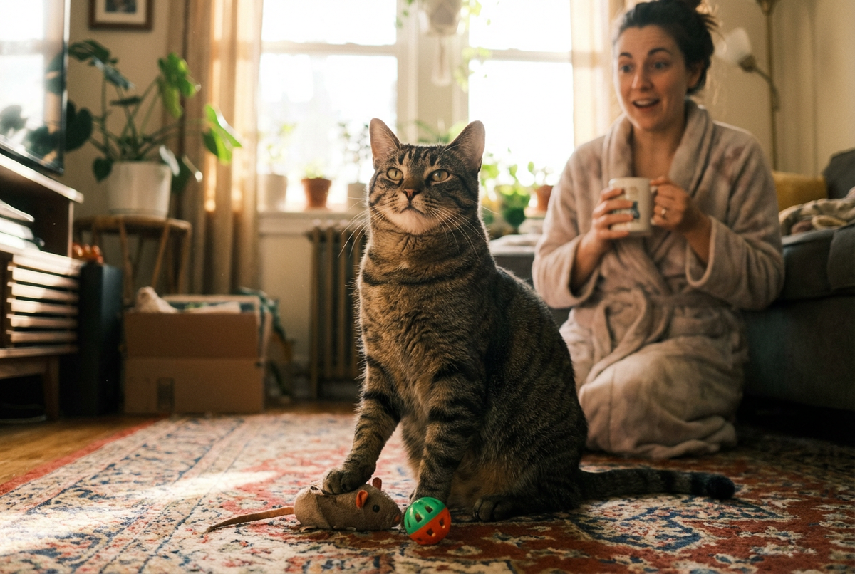 Она не издевается. Она делится. Вы просыпаетесь. Идёте на кухню босиком. И вдруг резко просыпаетесь окончательно. На ковре лежит добыча. Иногда это плюшевая мышка. Иногда – настоящая. Иногда – то, что лучше бы не рассматривать до кофе. Первая реакция редко бывает восторженной. А вот кошка в этот момент, скорее всего, довольна собой. Очень. Кошка не планирует вас шокировать. И уж точно не мстит за вчерашнюю стрижку когтей. Она хищник. Даже если спит под пледом и боится пылесоса. Охота – часть её программы. Поймать. Удержать. Принести в безопасное место. И если это место – ваш ковёр, значит, вы попали в круг «своих». Причин может быть несколько. И они не такие зловещие, как кажется в семь утра. В природе кошка-мать приносит добычу котятам. Сначала готовую, потом – почти живую. Это и забота, и обучение. Когда кошка приносит что-то вам, логика может быть простой: «Ты мой. Я о тебе позабочусь». Да, метод спорный. Но намерение – не злое. Добычу несут туда, где спокойно. Где никто не отнимет.