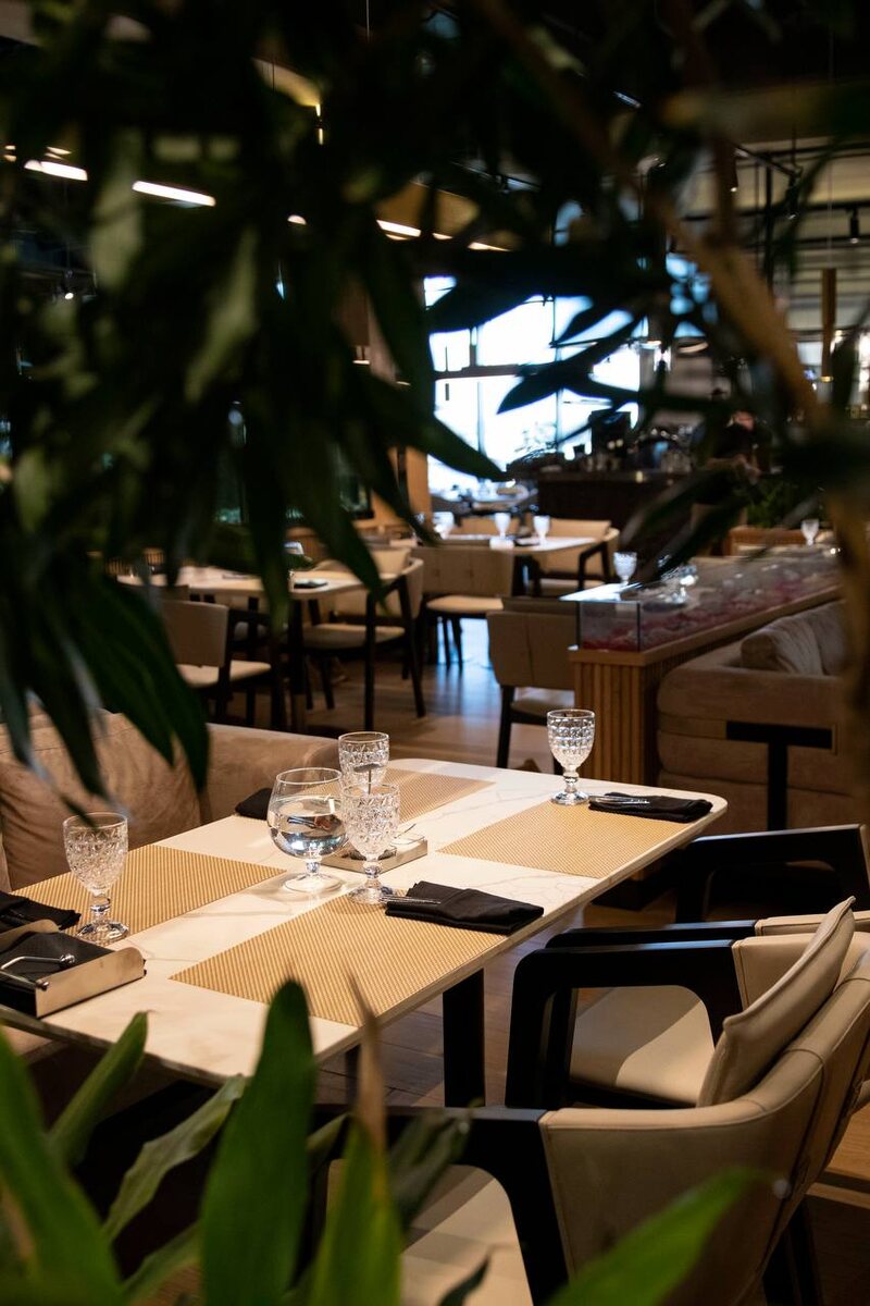 Это настроение. И мы знаем, где его найти: в мягком свете ламп, в линиях интерьера, в каждом элементе, созданном для вашего комфорта. Устройтесь поудобнее на мягких диванах, вдохните аромат любимых блюд и позвольте себе замедлиться. В Мясо&Рыба время течёт иначе — в ритме вашего отдыха. На фото интерьер ресторана «Мясо&Рыба» в ТРК «Европолис».