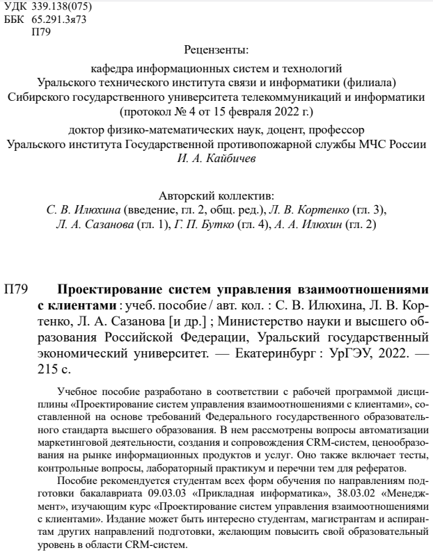 Для цитирования: Кортенко Л.В. Информационные технологии в рекламной деятельности // гл.3 в учебном пособии Илюхина С.В., Кортенко Л.В., Сазанова Л.А., Бутко Г.П., Илюхин А.А. Проектирование систем управления взаимоотношениями с клиентами. - Екатеринбург, 2022. – с.67-192