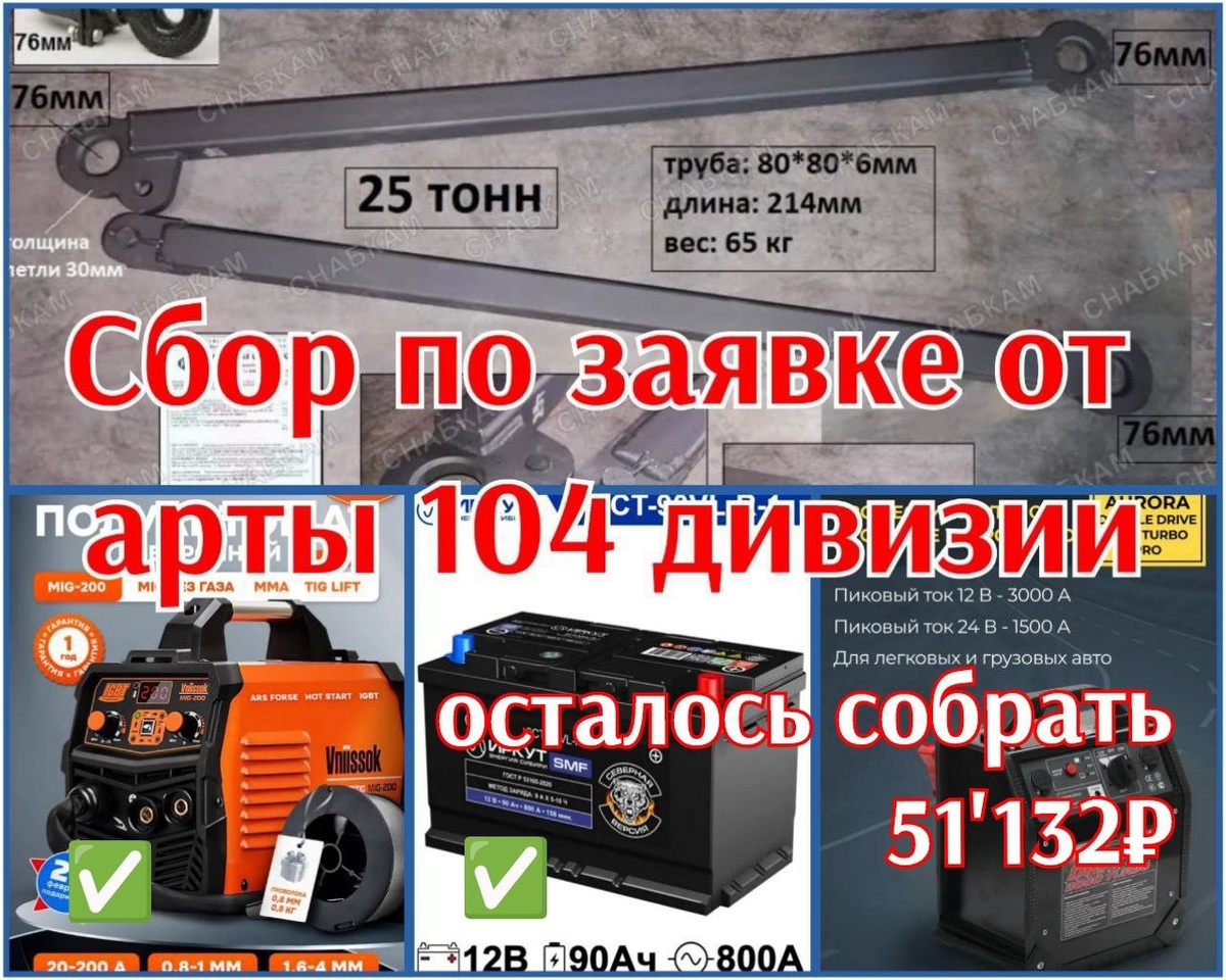 📦 Ура! Закрыта и уже заказана ещё одна позиция (аккумулятор стартёрный) для артиллеристов из 104 дивизии