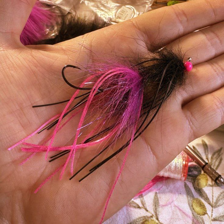 Люди ставят лайки на фото с такими изделиями и восхищаются «шикарным исполнением». Пусть делают что хотят — осуждать никого не буду, время сейчас непростое. А мы сегодня будем повышать уровень насмотренности и понимания — зачем вообще совершенствоваться в вязании — вместе с моим другом Евгением. Он сейчас сидит в заснеженном Шерегеше, в Сибири, и вяжет действительно красивые сибирские мухи. Эти интрудеры он собирается испытать на Камчатке. Легенда нехитрая: ваддингтоны, гантельки, тросик, песец, резинки, флэш.