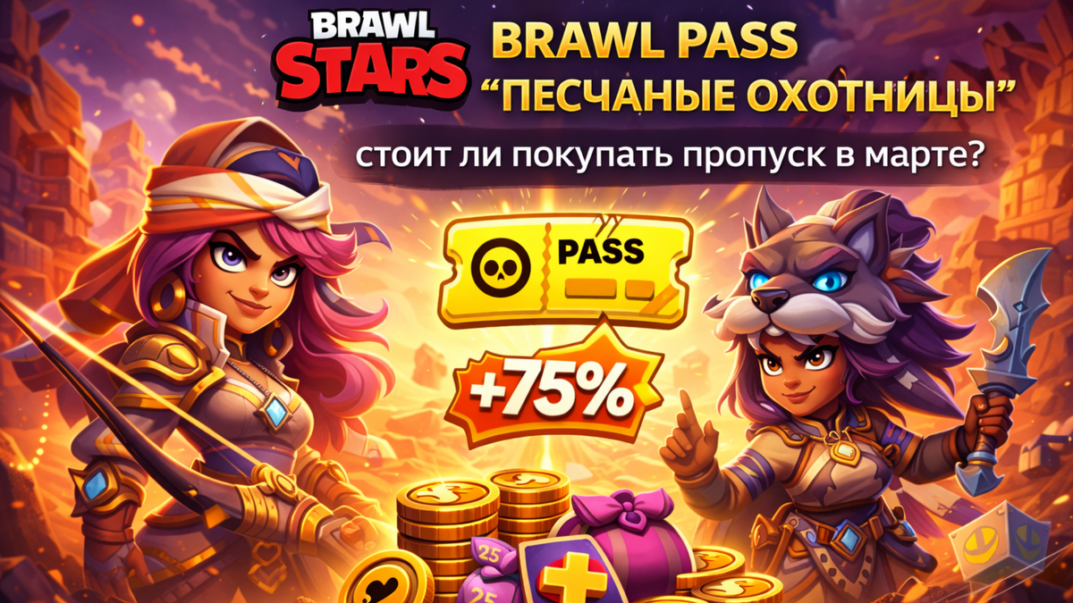 1 марта в Brawl Stars стартует новый сезон — «Песчаные охотницы». Тема пустыни, новые скины, награды и очередной Brawl Pass. Но главный вопрос каждый сезон один и тот же: покупать пропуск или играть без доната? Разбираем без фанатизма — выгодно ли это в марте и кому вообще нужен Brawl Pass. Если вы давно играете в brawl stars, то знаете: пропуск — это не просто косметика. Он даёт: Сезон «Песчаные охотницы» оформлен в яркой пустынной стилистике. Судя по первым анонсам, в пропуске будут уникальные облики и, вероятно, тематические эффекты для бойцов. Если вы играете регулярно — Brawl Pass почти всегда ускоряет прогресс. Если заходите раз в пару дней — эффект будет минимальным. Да, brawl stars бесплатно играется комфортно. Supercell сделали игру достаточно лояльной к F2P-игрокам: Но важно понимать: бесплатный путь — это медленнее. Если вы активно апаете аккаунт, участвуете в рейтинговых режимах и хотите быстрее открывать бойцов — пропуск заметно ускоряет процесс. Кстати, если вы только нач