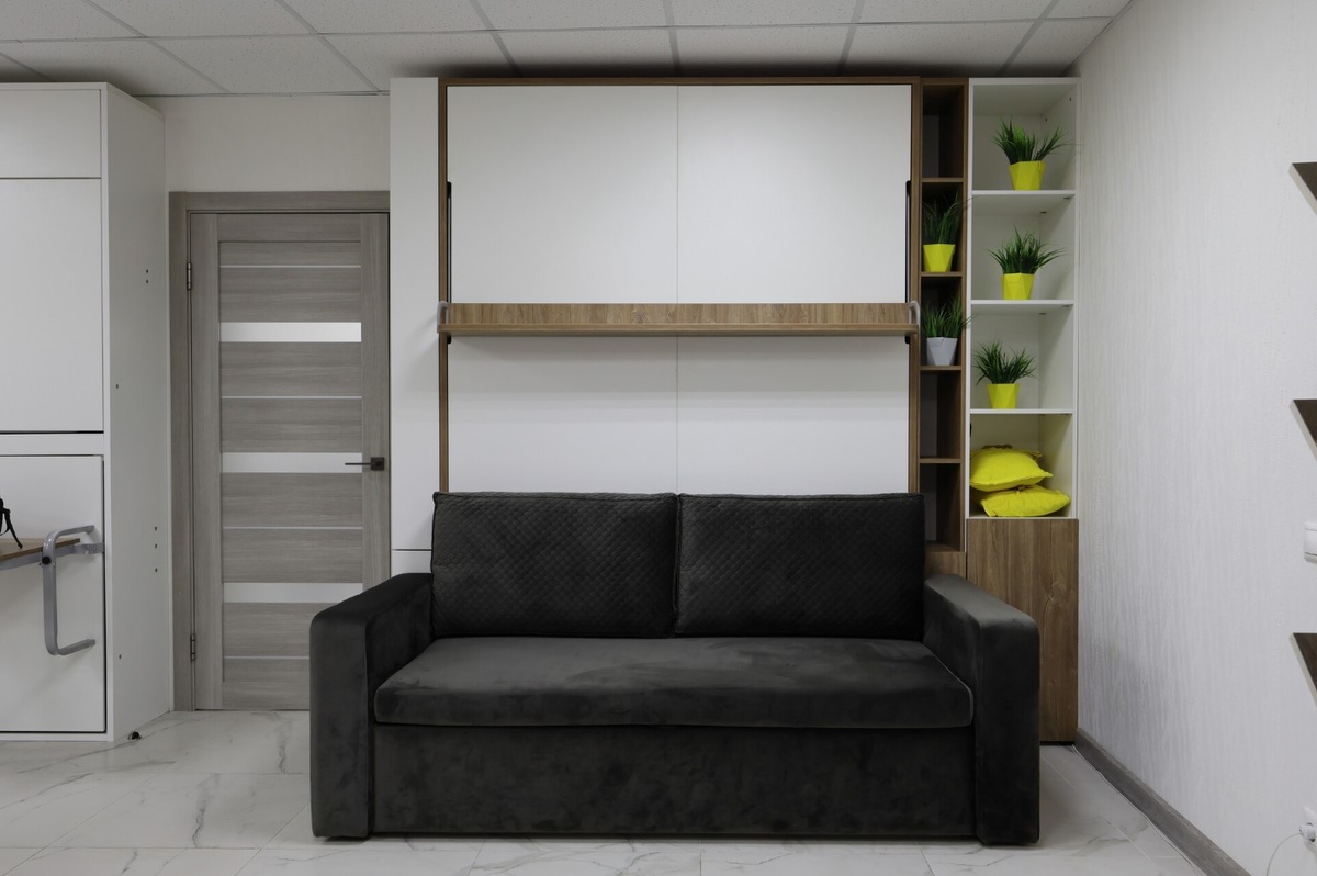 В условиях ограниченной жилой площади особенно актуальным становится вопрос рационального использования каждого квадратного метра. Шкаф-кровать с диваном «Высокий Фокстрот», который объединяет в себе полноценное спальное место и комфортабельную зону отдыха.