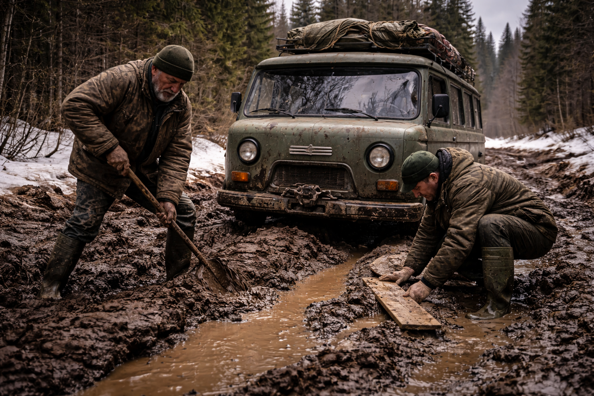 Дорога не ломается сразу. Она не трескается с грохотом, не проваливается под ногами в один момент. Она просто начинает исчезать. Сначала подтаивает обочина. Потом в колее появляется вода. Потом колея становится рекой. И в какой-то день ты выходишь из избы, смотришь на привычную тропу — и понимаешь: её больше нет. Весенняя распутица в тайге — это не просто грязь. Это время, когда всё, что казалось прочным, становится зыбким. Лёд на реке ещё держится, но уже чернеет. Снег на полянах лежит пятнами. Дорога к ближайшему посёлку превращается в вязкое месиво, в котором вязнут не только колёса — вязнут планы. Мы всегда ждали этой недели с осторожностью. Зима к тому времени уже выматывает. Хочется движения, хочется выезда, хочется отвезти шкуры, купить муку, встретить людей. Но именно тогда дорога уходит. У нас была старая «буханка». Зимой она почти не ездила — стояла под навесом, укрытая брезентом. Работал снегоход. Весной же всё наоборот: снег рыхлый, снегоход тонет, а колёса — пока ещё держа