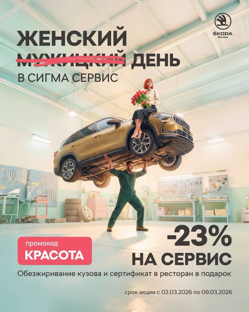 🌸 В Сигма Сервис праздничные дни со скидкой 23% и приятными подарками. С 02.03.2026 по 09.03.2026 по промокоду «КРАСОТА»: 🌸 Скидка 23% на работы и запчасти ✨ Обезжиривание кузова - в подарок 🍽 Сертификат в ресторан - в подарок * действует при условии покупки всех комплектующих и расходных материалов в ГК СИГМА, не суммируется с другими акциями. Пока мы приводим автомобиль в порядок, вы планируете вечер. ŠKODA Сигма Сервис 📍 пр. Маршала Блюхера, 69А 📞 +7 (812) 250-28-06