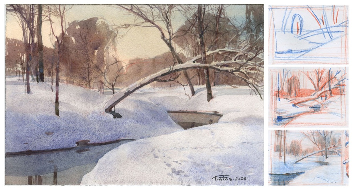 Конструирование пейзажа. Constructing an imaginary landscape. Краски Pinax Extra. Бумага 100% хлопок Палаццо 300 гр. Акварельные упражнения по вторникам (Москва, Садово-Кудринская 25) "Арт галерея Москва". #акварель #живопись #watercolor #pinax_extra #palazzo_watercolor_paper #Изо #watercolorsketch #ArtBatDiversion #artLesson #мастеркласс