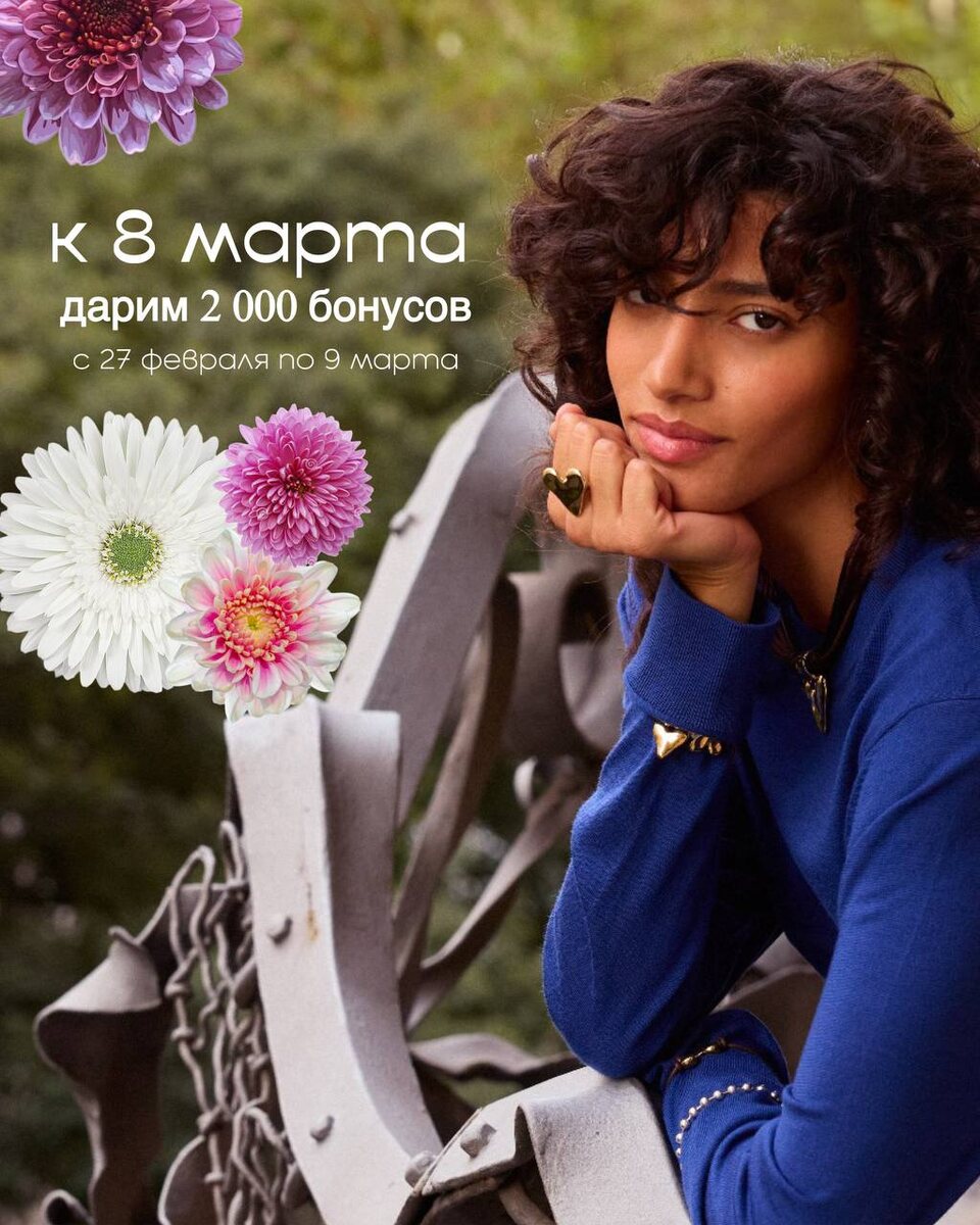 !🌷 В честь приближения весны и Международного женского дня дарим 2000 бонусов всем участникам программы лояльности! Как воспользоваться: 🌸период действия: с 27 февраля по 9 марта; 🌸где потратить: в розничном магазине или на сайте; 🌸можно списать до 35 % от стоимости покупки (зависит от уровня лояльности). Не упустите шанс порадовать себя или близких стильными украшениями! Регистрируйтесь в программе лояльности прямо сейчас — и получайте бонусы. 💐 Пусть весна приносит только радость! 💐
