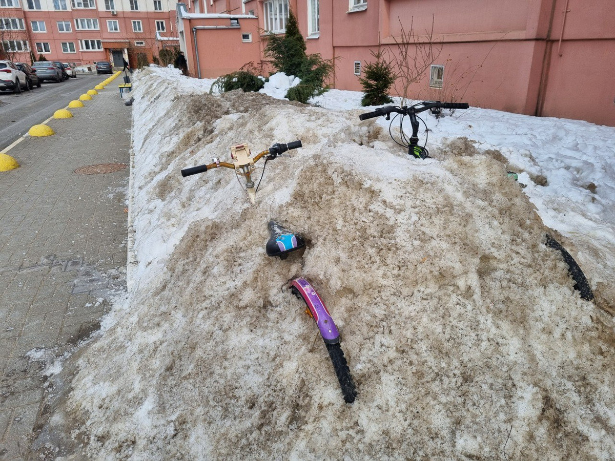 К покупке велосипеда, как правило, относятся тщательно. Выбирают модель, интересуются комплектующими: хочется, чтобы покруче, но за разумные деньги. А вот уже имея в собственности двухколесный транспорт, велолюбители иногда где-то теряют свою щепетильность. Это чревато тем, что выбирать новый велосипед вскоре придется заново. Вот что заметил наш фотокорреспондент во дворе одного из минских домов. Даже если в теплое полугодие эта площадка и была приспособлена для временного хранения велосипедов, то зимой она явно перестала быть подходящим местом. Выпал снег, который активно убирали с проезжей части, и в какой-то момент два велика оказались схоронены где-то в сугробе. Теперь сугроб тает, и велосипеды снова являются миру. Важна техническая сторона вопроса. Низкие температуры, влажность, в конце концов соль, которой обрабатывают проезжую часть и тротуар и которая наверняка смешалась со снегом, укрывавшим велосипеды многие дни и недели, — все это без сомнения сгубит и металл, и смазку в под