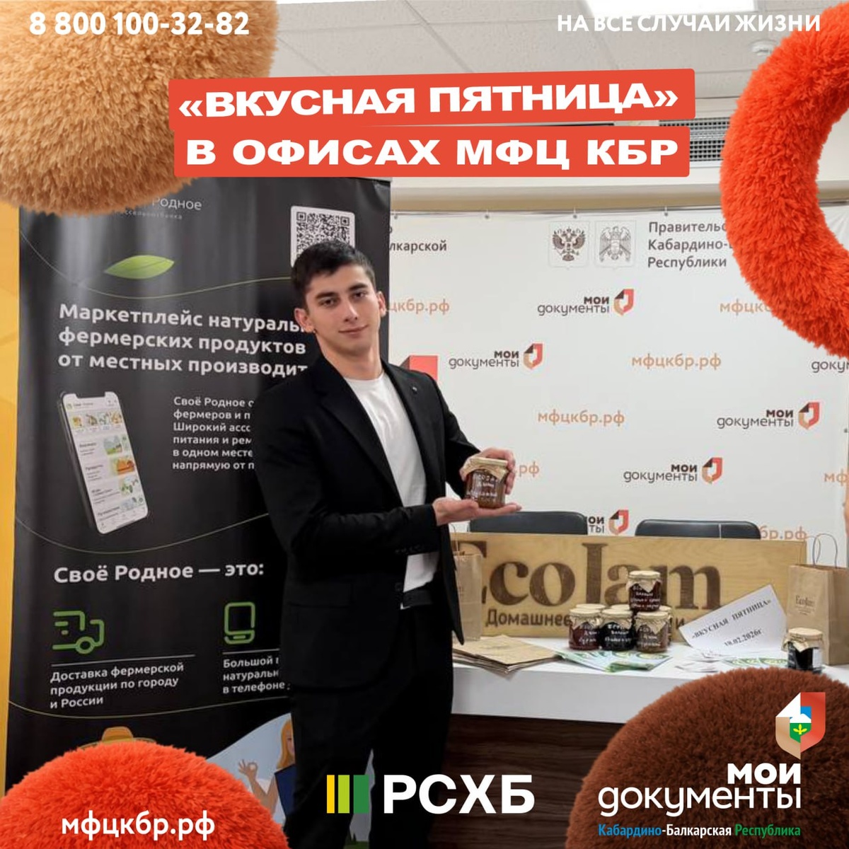🔹 Уже не первый раз проект Россельхозбанка «Вкусная пятница» состоялся на базе многофункционального центра по предоставлению государственных и муниципальных услуг. В этот раз свою продукцию представил региональный бренд компании «ECOJAM» 🇷🇺. Залина Блиева – яркий пример успешного предпринимателя и общественного деятеля из Кабардино-Балкарии. Ее путь начался с желания возродить забытые семейные рецепты домашних варений и джемов, превратив это увлечение сначала в успешный бизнес-проект «ECOJAM», а позже расширив ассортимент уникальным продуктом под брендом «BULKARI», известным своими ремесленными и полезными хлебами. ⚡️ Всероссийский проект Россельхозбанка «Вкусная пятница» предоставляет шанс фермерам расширить клиентскую базу, а посетителям попробовать и приобрести натуральные продукты, познакомиться с производителем, задать все интересующие вопросы о процессе производства. «Мы рады возможности внести свой незначительный вклад в поддержку региональных товаропроизводителей. Очень в