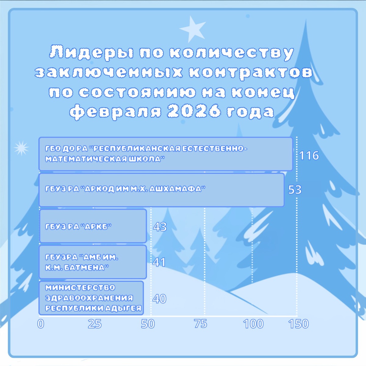 Республики Адыгея лидерами по количеству заключенных контрактов стали следующие организации. (см. график).