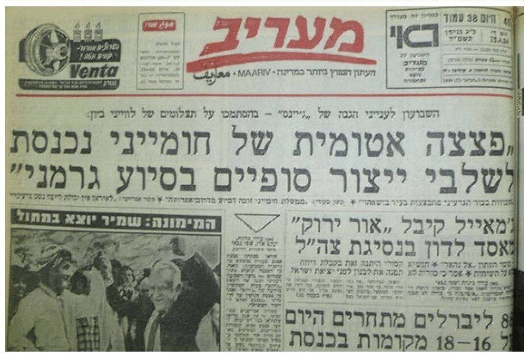 🇮🇱🇮🇷 Израильская газета «Маарив». Номер от 1984 года. Газета сообщает, что «ядерная бомба Хомейни входит в последние стадии производства с немецкой помощью».