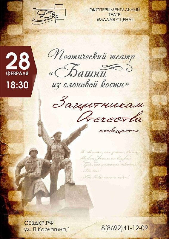 🎖️ Сходим на поэтический театр «Башни из слоновой кости» «Защитникам Отечества посвящается... »