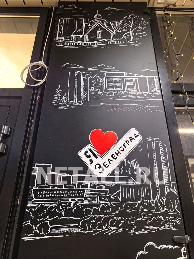 Рисунки с видами Зеленограда у входа в ТЦ «1000 мелочей»