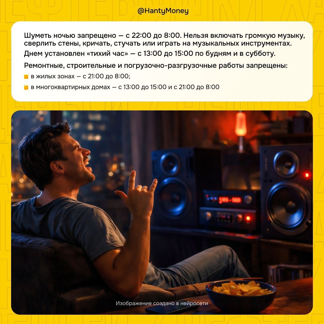 ❓Что делать, если соседи нарушают закон? Рассказываем 🔸В Югре, как и во всех регионах России, действует закон о тишине. 🔸Документом регулируется уровень шума в жилых и общественных зонах, а также устанавливаются часы, когда можно проводить вечеринки, ремонт и другие шумные работы. 🔸Собрали в карточках основное. Сохраняйте на всякий случай⤴️ Подписаться | Прислать новость | Дать «буст» | Мы в MAX