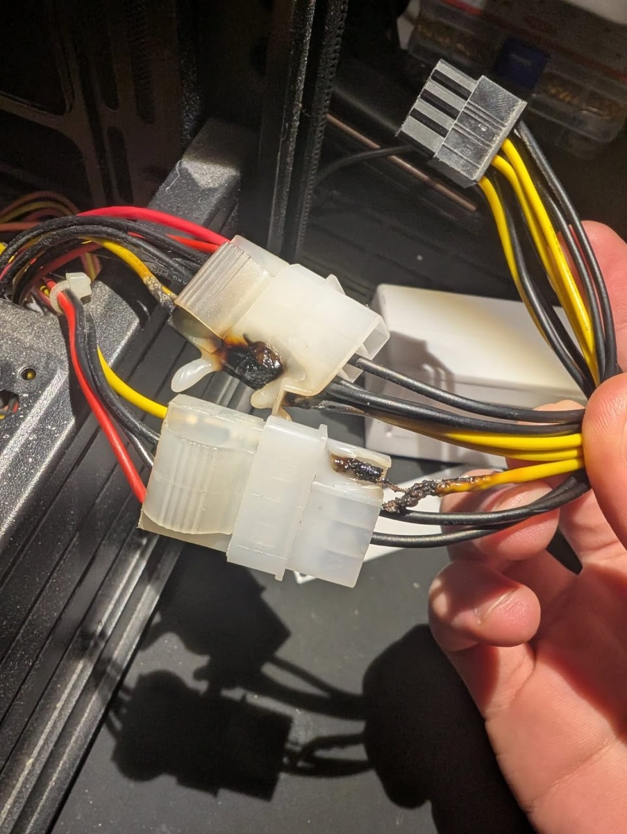 Пользователь сделал апгрейд с GTX 1060 на RX 6600 XT. На старом блоке питания кабеля 8-pin не нашлось, но на помощь пришел старый и многими любимый переходник 🔥